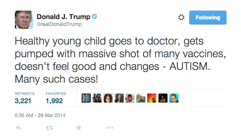 Trump made similar remarks in a series of tweets in 2014, after a CDC report revealed that autism rates in U.S. children had increased by 30 percent in the last two years.(6)